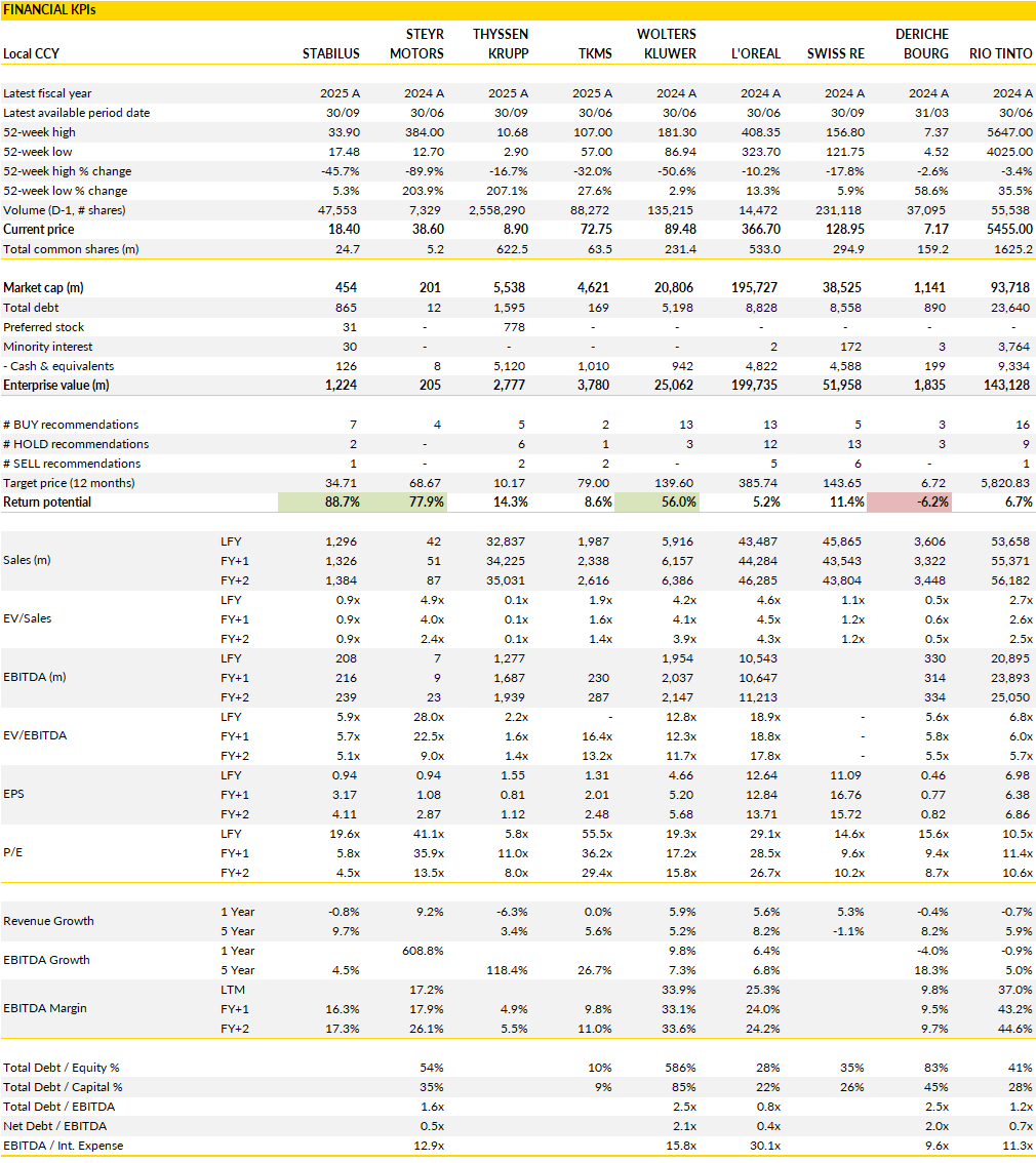 Stabilus, Steyr Motors, thyssenkrupp, thyssenkrupp Marine Systems, Wolters Kluwer, L’Oréal, Swiss Re, Derichebourg, Rio Tinto