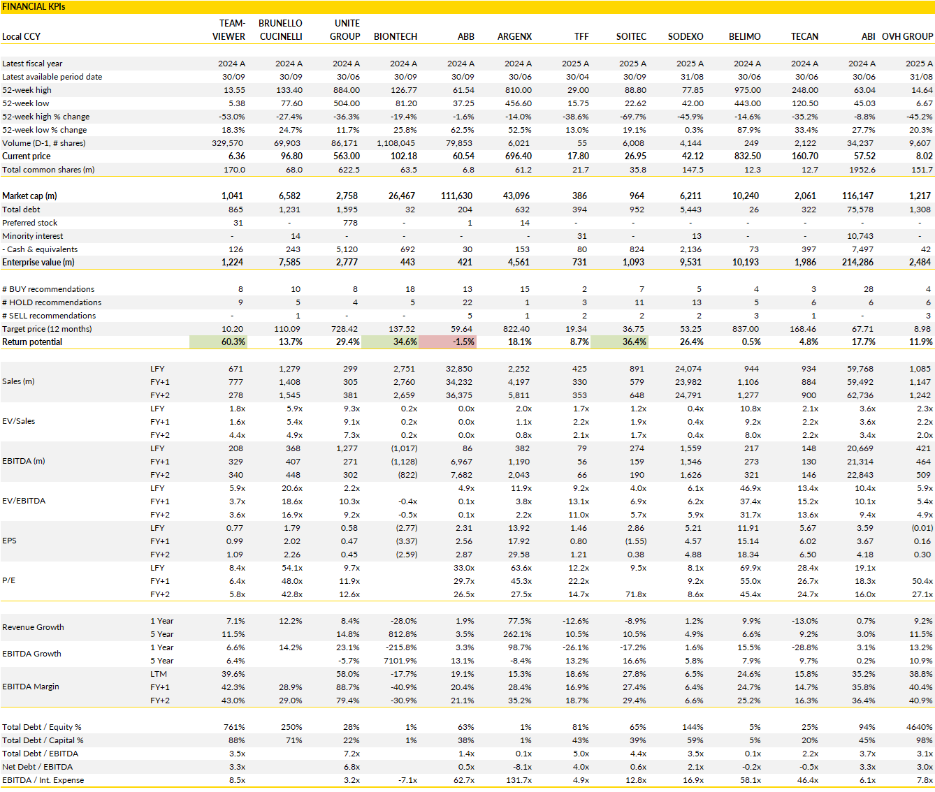 TeamViewer, Brunello Cucinelli, Unite Group, BioNTech, ABB, Argenx, TFF, Soitec, Sodexo, Belimo, Tecan, Anheuser-Busch InBev, OVHcloud