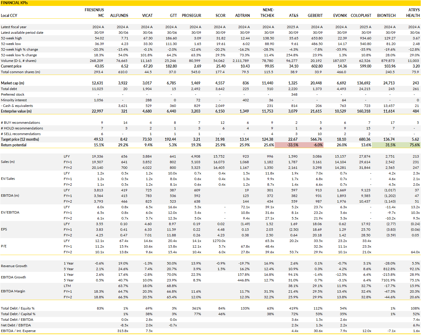 Fresenius Medical Care, Allfunds, Vicat, GTT, Prosegur, SCOR, Adtran, Nemetschek, AT&S, Geberit, Evonik, Coloplast, BioNTech SE, Atrys Health