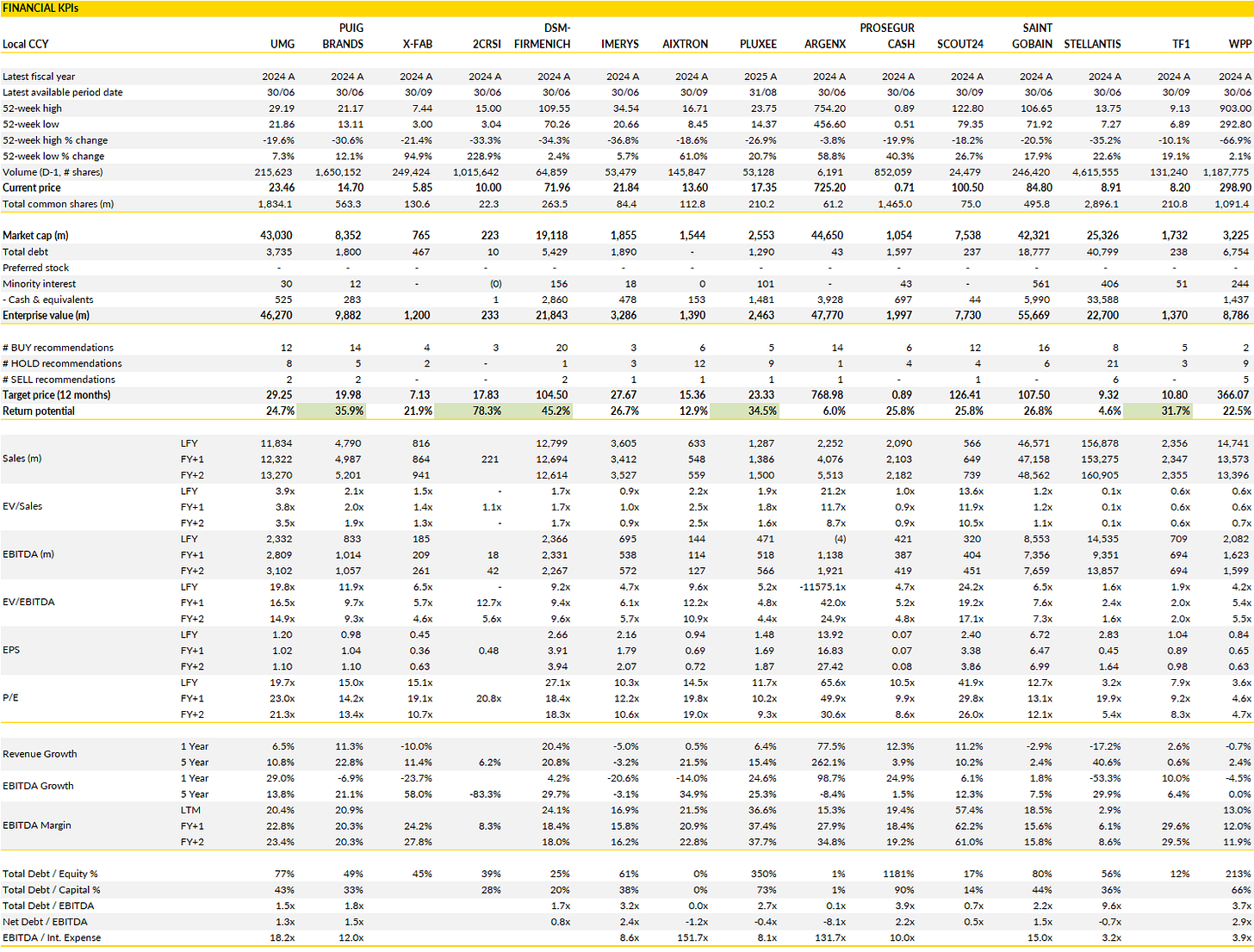 UMG, Puig, X-FAB, 2CRSi, dsm-firmenich, Imerys, Aixtron, Pluxee, Argenx, Prosegur Cash, Scout24, Saint-Gobain, Stellantis, TF1, WPP