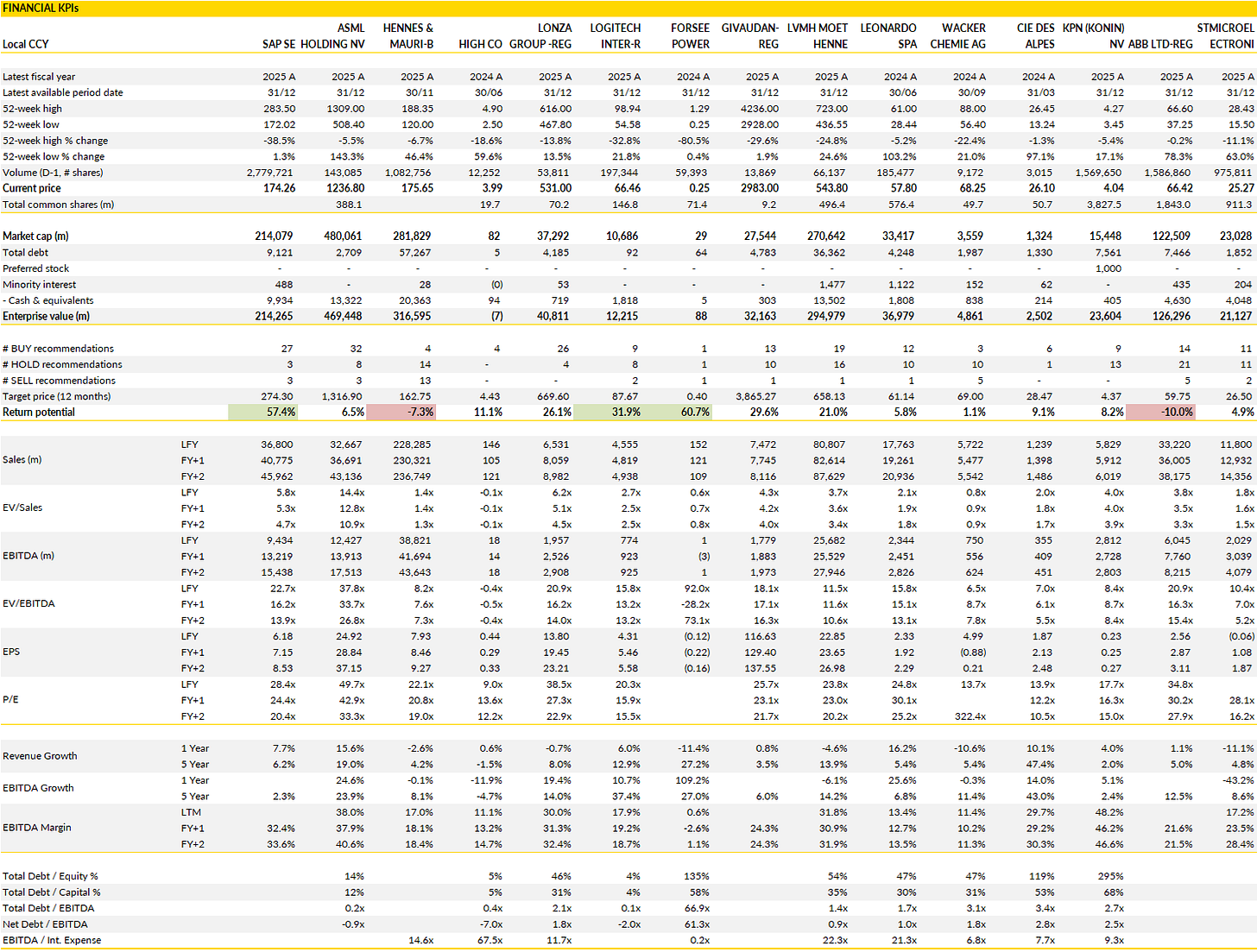 SAP, ASML, H&M, HighCo, Lonza, Logitech, Forsee Power, Givaudan, LVMH, Leonardo, Wacker Chemie, Compagnie des Alpes, KPN, ABB, STMicroelectronics